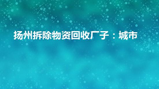扬州拆除物资回收厂子:城市更新中的重生与挑战