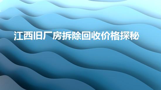 江西旧厂房拆除回收价格探秘:价值,如何精打细算?