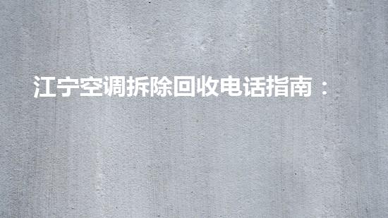 江宁空调拆除回收电话指南:专业服务,解决旧空调烦恼