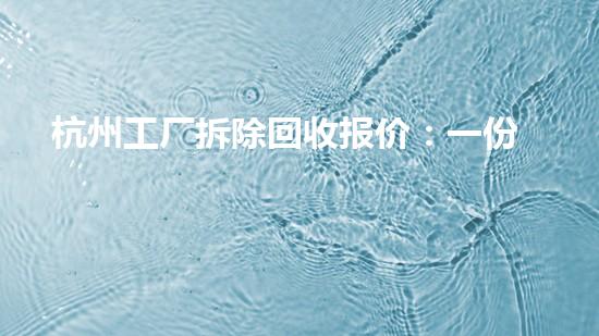 杭州工厂拆除回收报价:一份透明、资深价值并存的深度刨析