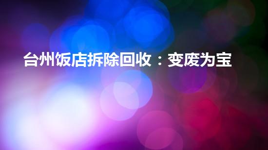 在台州这座充满活力的滨海都市,更新与商业迭代的步伐从未停歇。每当一家老牌饭店其历史使命,面临拆除重建时,一个不可或缺却常忽视的环节便浮出水面——拆除回收。这简单的“一拆了之”,而是一项融合了环保责任资源循环与经济效益的系统工程。资深的台州饭店拆除回收正将堆积如山的建筑垃圾与废旧物资,转化为都市可持续进步的资源。