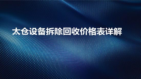在太仓这座工业基础雄厚的城市工厂搬迁、产线升级、设备淘汰是每个企业发展中面临的常态。当您面对一堆闲置或待处理的旧设备,一个核心问题便会浮现:这些设备拆除回收究竟值多少钱? 一份清晰、透明的“太仓拆除回收价格表”无疑是您决策的关键参考。然而,回收价格并非一个固定的数字,它受到设备类型、成、市场行情及回收服务专业度的多重影响。本文将为您解析影响价格的核心因素,并提供一份具有参考价值的评估框架助您在处置资产时做到心中有数,实现价值最大化## 影响设备拆除回收价格的核心因素