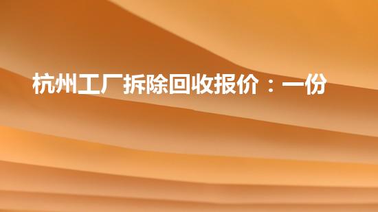 杭州工厂拆除回收报价:一份透明、资深价值并存的深度刨析