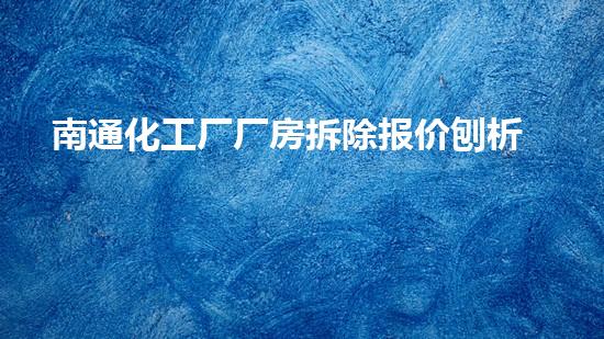 南通化工厂厂房拆除报价刨析与成本控制策略