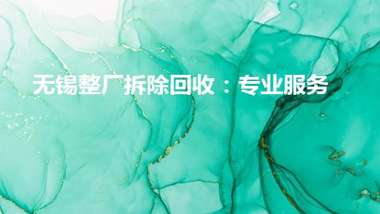 无锡整厂拆除回收:专业服务如何创造价值与绿色未来