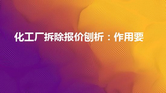 化工厂拆除报价刨析:作用要素与成本控制策略化工厂拆除是一项技术复杂、危险较高的系统工程其报价往往因项目具体状况差异巨大。伴随化工产业升级和环保要求日益严格,越来越多的老旧化工厂面临拆除改造,了解拆除报价的构成要素对项目预算编制和成本控制不可或缺。资深的化工厂拆除不但涉及建筑物拆除,更包括危险化学品处置、设备拆卸、污染土壤修复等环节,需要综合考虑安全、环保、技术等多主要素。