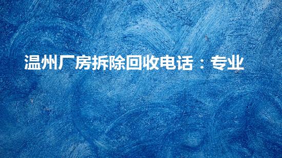 在温州这座以民营经济著称的城市,产业升级与城市更新的步伐从未停歇。随着腾笼换鸟”政策的深入推进与制造业的转型升级,大量厂房面临着拆除与改造的命运。如何高效、安全、环保处理这些庞然大物,并实现其剩余价值的最大化回收,许多企业主与项目负责人关注的焦点。此时,一个可靠的温州厂房拆除回收电话,便成为连接旧时代废墟与蓝图的关键桥梁。本文将为您深入解析专业拆除回收服务的重要性核心流程与选择标准,助您在这一重要转型节点上明智决策。
