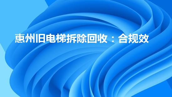 惠州旧电梯拆除回收:合规效率高服务指南