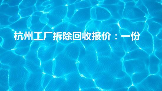 杭州工厂拆除回收报价:一份透明、资深价值并存的深度刨析