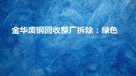 金华废钢回收整厂拆除:绿色转型的核心解法