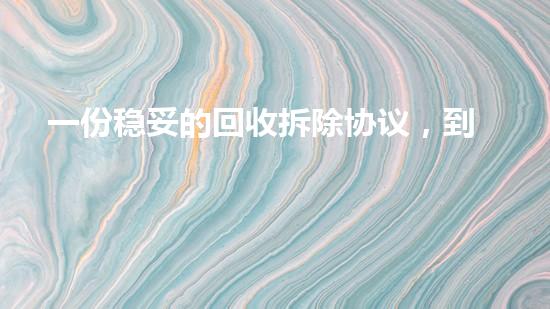 说到底,签下一份回收拆除协议,你不是购买一次简单的体力劳动,而是在购买一份“确定性的”和“危险转移的保障”。它所有的冗长和碎,都是在用事前复杂的文字,去避免事后更纠纷。
