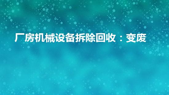 厂房机械设备拆除回收:变废为宝的智慧与专业实践