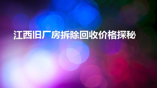 江西旧厂房拆除回收价格探秘:价值,如何精打细算?