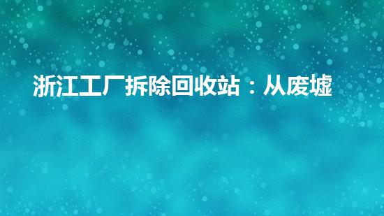 浙江工厂拆除回收站:从废墟中掘,以绿色重塑未来