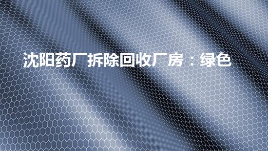 沈阳药厂拆除回收厂房:绿色转型中的挑战与机遇