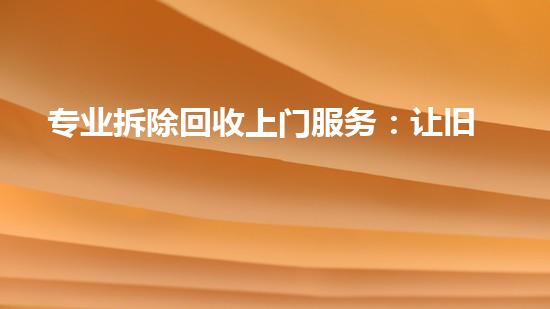 在城市化进程不断加速的今天无论是家庭装修升级、企业搬迁改造,还是厂房设备更新都会产生大量需要拆除的废旧物品。传统的处理方式往往是随意丢弃或低价卖给流动商贩,这不仅造成了资源的巨大浪费,还可能带来环境污...
